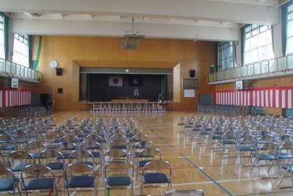 3月25日(月)今年度最後の学校日記です。本日卒業式がありました。卒業生の送り出しと、卒業式の終わった体育館の様子を撮りました。また、ふとビオトープを見ると、たくさんのオタマジャクシがいました。1年間ありがとうございました。