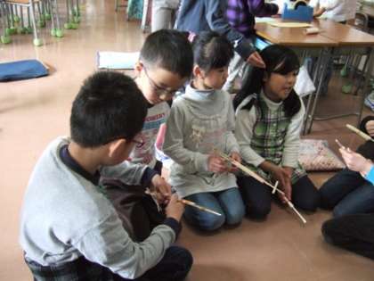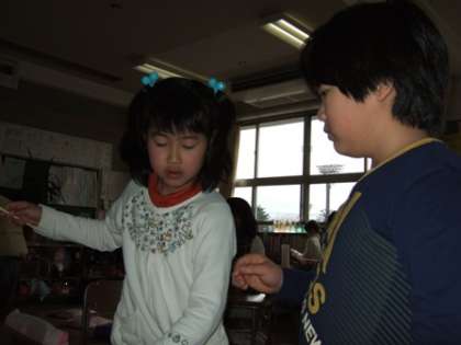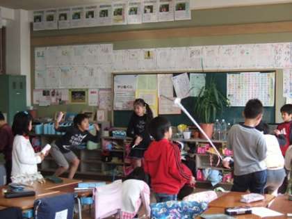 写真は2−1の様子です。1−1と、栗林先生をお招きして、一緒におもちゃをつくったり、遊んだりして1時間を楽しみました。