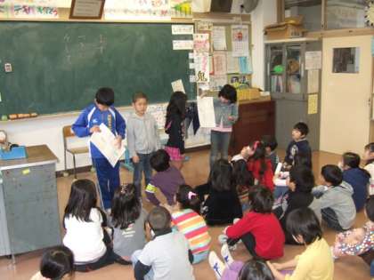 今日は、2年2組で「1年生におもちゃのつくりかたを伝えよう」を行いました。