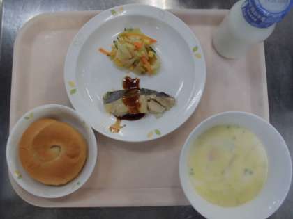 ※本日「魚のフライ」の予定でしたが、台風の影響により「魚のピカタ風」に変更しています。調理方法のみ変更で、使用する材料に変更はありません。