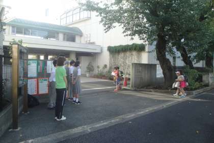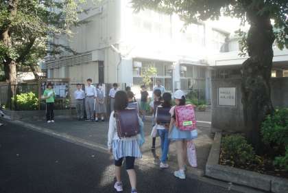 9月17日(月)今週は、あいさつ運動です。三宿中学校の生徒も応援に駆け付け、正門とピンク門に立っています。是非大きい声であいさつができるといいですね。