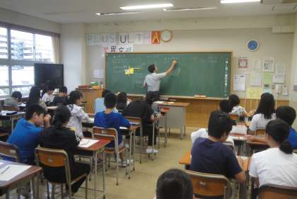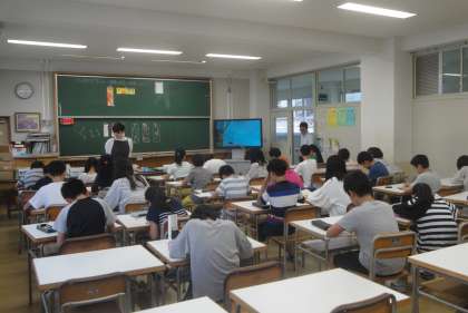 9月18日(水)午後に6年生が三宿中学校に体験授業に行きました。1組は美術、2組は数学の授業を体験しました。