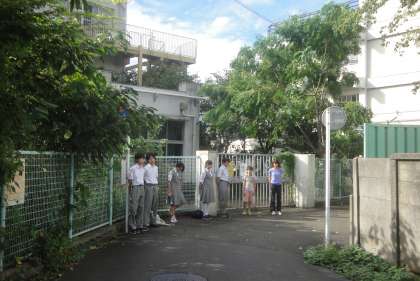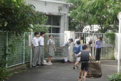 9月19日(木)今週はあいさつ週間です。ピンク門にも中学生が立って、池尻小学校の子どもたちに挨拶をしています。朝からうれしい気持ちになります。