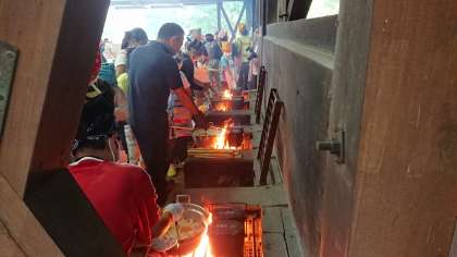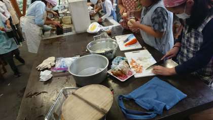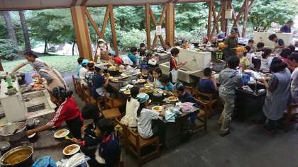 今日の夕食は、飯ごう炊さんでした。自分たちでつくるカレーの味は最高です。おいしかったです。