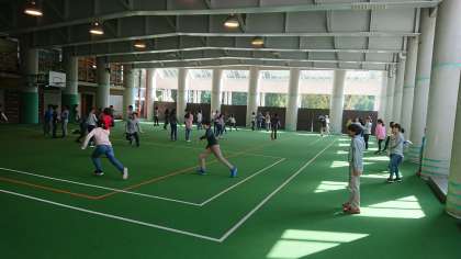 お弁当を食べた後の時間が少しあったので屋根つき広場でドッジボールや風船を使ったゲームをみんなで楽しみました。