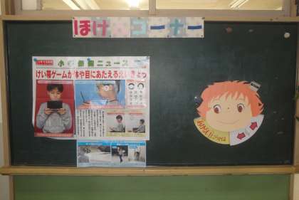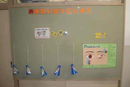 10月のほけんコーナーは、「目を大切にしよう」です。いろいろな動物の目も掲示されています。保健室前の廊下にありますので見に来てください。