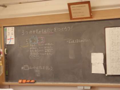 1年生は、生活科の学習で、校庭周りの様子を観察し、9月の頃との違いを見付けました。算数では、3つの数を使ったたし算やひき算の問題作りに挑戦しました。