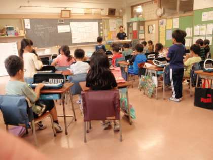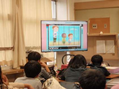 今日は、4〜6年生はモジュールタイムがありました。6年生の英語では、ショートストーリーのアニメーションを見たあと、a、b、c・・・のそれぞれのアルファベットから始まる単語を順番に発表していました。