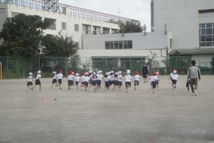 11月9日(土)1時間目と2時間目は、1年生がクラスごとに、走・跳運動特別授業がありました。今日も君野貴弘先生に来ていただき、元気に運動に取り組みました。