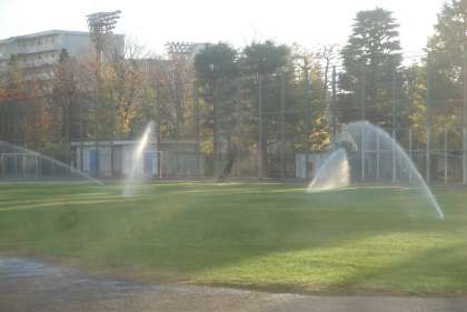 12月4日(水)今朝は、ユニセフ集会の予定でしたが、1年生と3年生がインフルエンザによる学年閉鎖をしているため、朝遊びとなりました。子どもたちが来る前に、芝生に水やりをしました。
