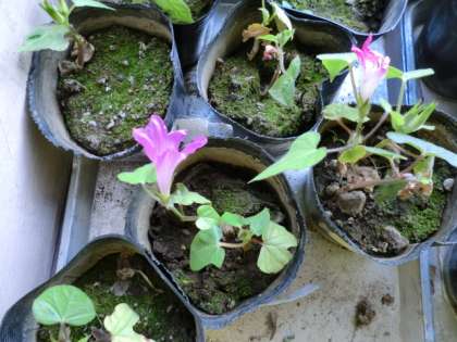 今の3年生が2年生のとき、冬に植えたアサガオが、4月になってついに花を咲かせました。