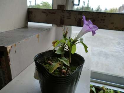 1、2、3月と日向に置いて、水をたくさんやって一生懸命育てたアサガオは、5年1組の教室にお引っ越し。