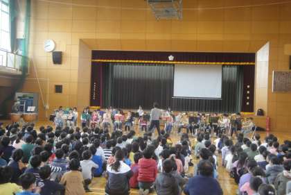 2月14日(金)本日の音楽朝会は、はじめに全校で「勇気100%」を歌いました。その後、本校の金管バンドが、明日世田谷区民会館で発表する曲を演奏しました。とても上手でした。明日が楽しみです。