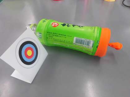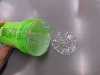 1,「炭酸入り」の容器は丈夫なので風船をかぶせても壊れにくいです。しかし、切るときに子どもだと難しいと思います。