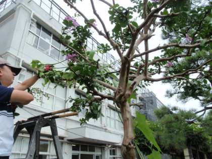 ツルが長く伸び、サルスベリの木に巻き付いていたので、主事さんが、日が当たるように枝を払ってくださいました。実が大きく育つとよいですね。