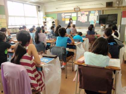 5年生の2組は月曜日に、1組は今日、保健室の先生と一緒に体の成長について学習しました。