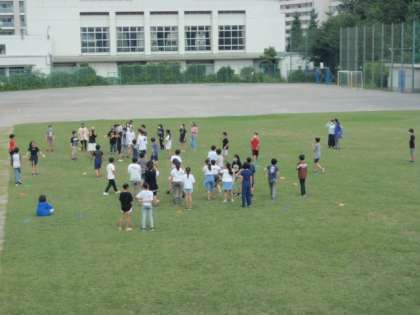 子どもたちの希望を受け、ドッジボールや鬼ごっこなどをして楽しんでいました。