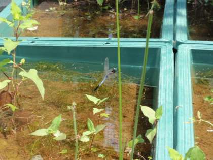 写真は、3年生が作ったビオトープに来ていたトンボの様子です。