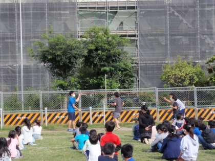 最後には、ジャングルジムや体育館などの運動施設についてのクイズもあり、全校のみんなで楽しいひと時を過ごすことができました。