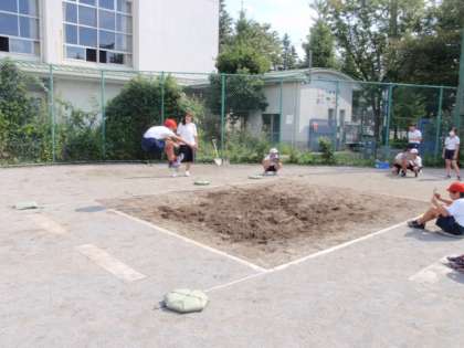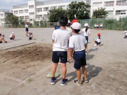 5年生は、体育の時間に走り幅跳びの学習をしています。