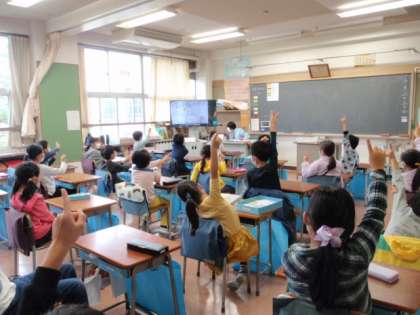 ビデオを見ていた子どもたちからは、「(クイズの出し方が)かっこいいなあ。」や、「(今まで知らなかった先生たちの一面を知って)へえ、そうなんだあ。」などの声があがっていました。