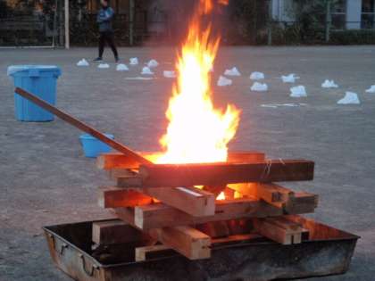 みんなで夜の学校を楽しもう キャンプファイヤー