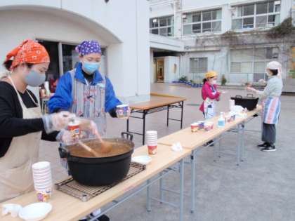 今年は、ご飯は家から持ってくることにしました。88会の皆さんが作り、カップによそっておいてくださったカレーをもらい、芝生(養生中ですが特別に入りました!)の上に広がって食べました。