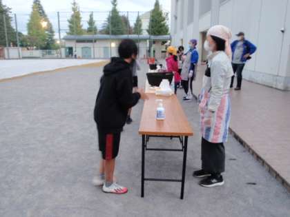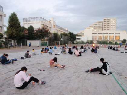 キャンプファイヤーに点火した後、食事(カレーライス)タイムです。
