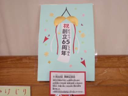 池尻小学校は、今年度、開校65周年を迎えました。開校記念日は11月22日ですが、それに先立ち、14日(土)に開校記念集会を行います。今は体育館に全学年が集まることができないため、校内テレビ放送で行います。