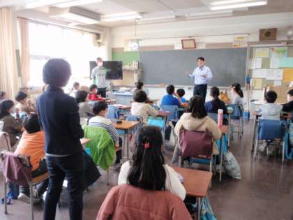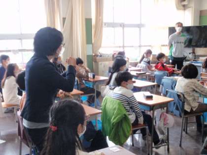4年生は、総合的な学習の時間に、NPO法人世田谷区聴覚障害者協会から講師の先生と手話通訳の方を派遣していただき、学習しました。4年生の子どもたちは、関心をもって話を聞いたり、積極的に質問したりしていました。