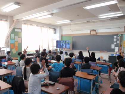 昨日の1年生に続き、今日も世田谷警察署の方にいらしていただき、3年生が交通安全教室を行い、自転車に乗るときの交通安全について学習しました。