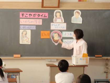 今日は、2年生のすこやかタイムがありました。テーマは、「おなかの中の赤ちゃん」です。