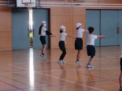 授業の初めには、「足が速くなるダンス」をしました。明日筋肉痛になりそうなくらいの運動です。子どもたちからは、「続けてやったら、本当に足が速くなりそう。」という感想が聞かれました。