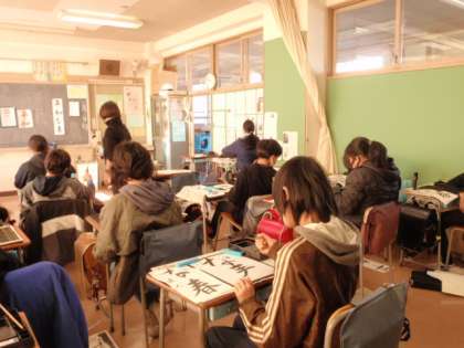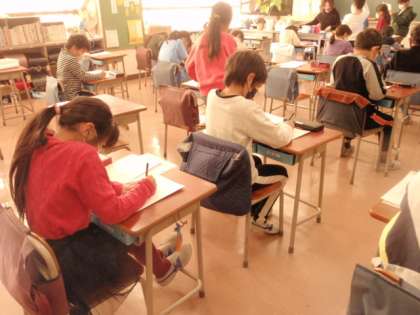 今日は、いくつかの学年が、書き初めをしていました。