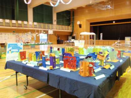 また、カッターナイフの使い方を練習した3年生は、「こんなマンションがあったらいいな」と思う建物をイメージして、「カッターナイフ・マンション」をつくりました。
