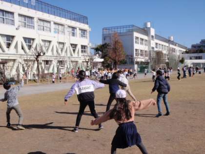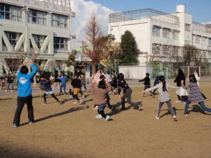 休み時間の初めに「足が速くなるダンス」の音楽が流れ、校庭のあちらこちらで踊る姿が見られました。