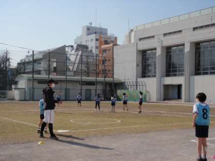ルール説明の後は、実際にゲームをしながら、ボールを投げる、捕る運動(ゲーム)を楽しみました。子どもたちからは、たくさんの歓声があがっていました。
