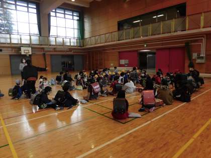 各集団下校班に分かれて、打ち合わせ後に校長先生の話を放送で聞きました。