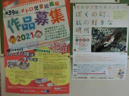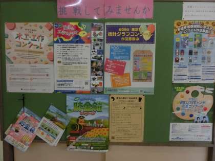 夏休み期間中に、絵画や工作などのコンクールに参加してみませんか?7月に配布した「夏休み向け コンクールのご案内」というお知らせ以外にも、職員室前に掲示してあるコンクールもあります。コンクールによっては作品が返却されないものもありますので、お気をつけください。また、参加賞などを用意しているコンクールもあるようです。ホームページなどで是非検索してみてください。