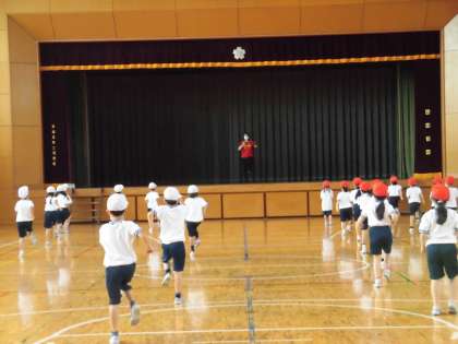 運動表現練習が始まりました。1年生は全身を使って足を上げたり、しゃがんだり、跳んだりした学習をしています。先生の見本を見ながらみんな一生懸命です。引き続き頑張ってほしいです。