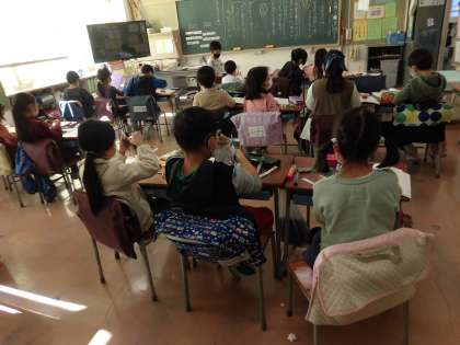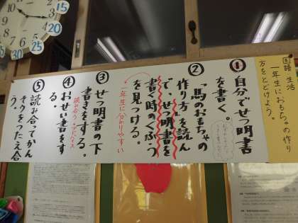 1年生におもちゃの作り方を伝えるために、子どもたちが学習計画を立てました。