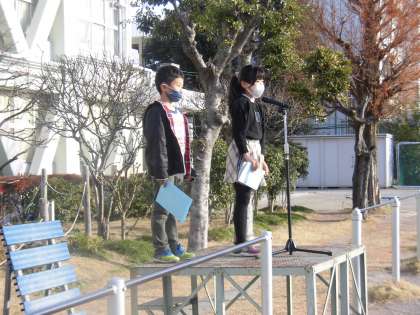 2学期を振り返り、3年生の2名が児童代表の言葉を発表しました。