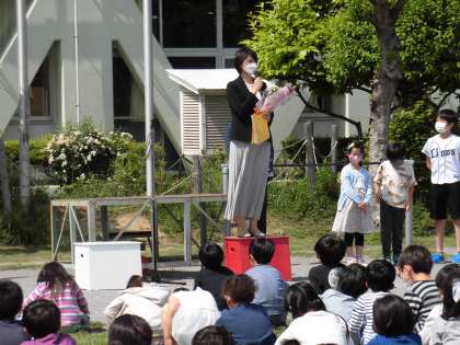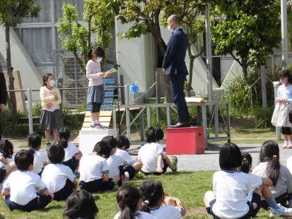 残念ながら、体調不良や校務のためお一人だけの参加となってしまいましたが、子どもたちは事前に用意した作文で感謝の気持ちを表しました。
