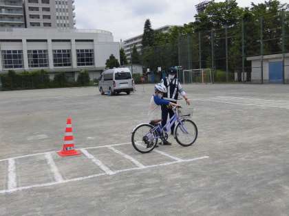 3年生は自転車に乗っての安全教室です。