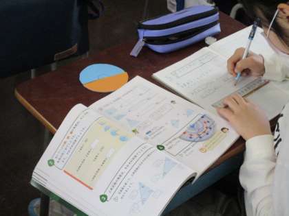 4年1組の授業は算数です。