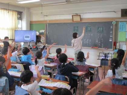 クラスのみんなも実習生の先生の話をしっかりと聞いています。