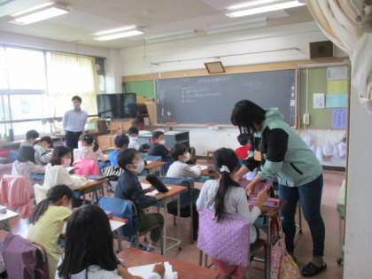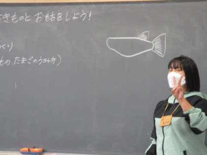 今日は、めだかのすみかや体のつくりについて「ビオトープギルド」の方にいらしていただき、お話をうかがいました。「めだかって、どんな体だったかな。」と、思い出しながら楽しく学習に取り組みました。