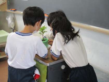 ホウセンカやヒマワリなどの植物を観察して、ノートにまとめます。