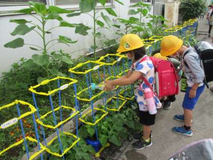 1年生・2年生は毎朝水やりをしながら、その成長の様子を観察しています。