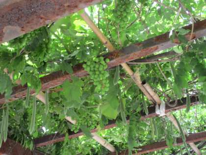 見に行くと、藤棚には、立派なたくさんのブドウがなっています。